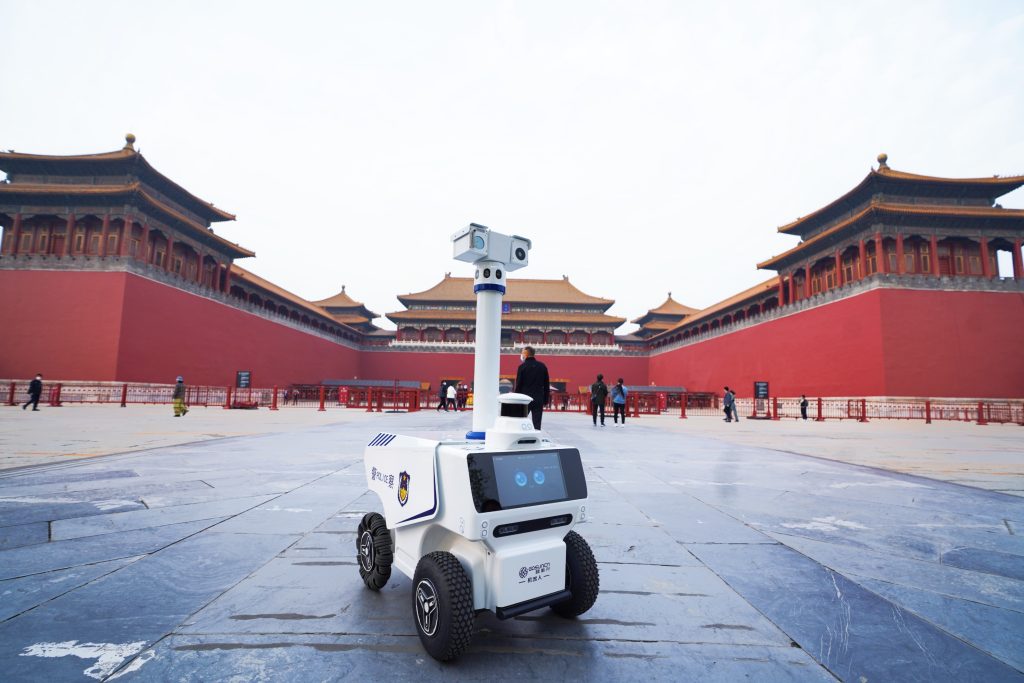 重大活动安保场景,警用巡逻机器人可大面积、全时域快速部控,执行巡逻监测、值守布控等任务,实现人脸识别、反诈宣传、安保提示、智能交互等业务功能,与现场固定监控及无人机形成空地一体的立体巡防。